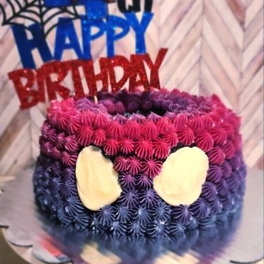 Our single bundt cakes are available in 8" (feeds 12-16) and 10" (feeds 18-24) rounds in any of our available flavors. Cakes can be either a regular round or a heart-shaped bundt cake and are decorated with plant-based food coloring.