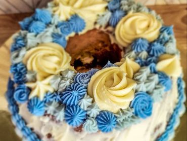 Cinnamon-kissed comfort with a luxe twist. Buttery cake swirled with warm cinnamon spice and finished with smooth cream cheese frosting that melts into every bite.